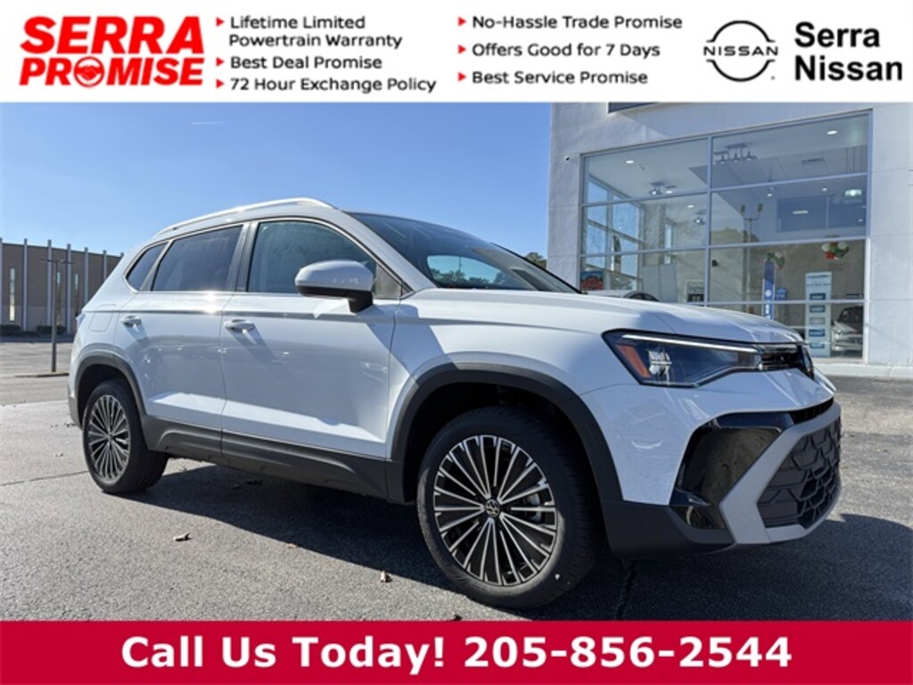 Come on down to Serra Nissan/VW to see this Pure White 2025 Taos. Odometer is 7496 miles below market average! 28/36 City/Highway MPG