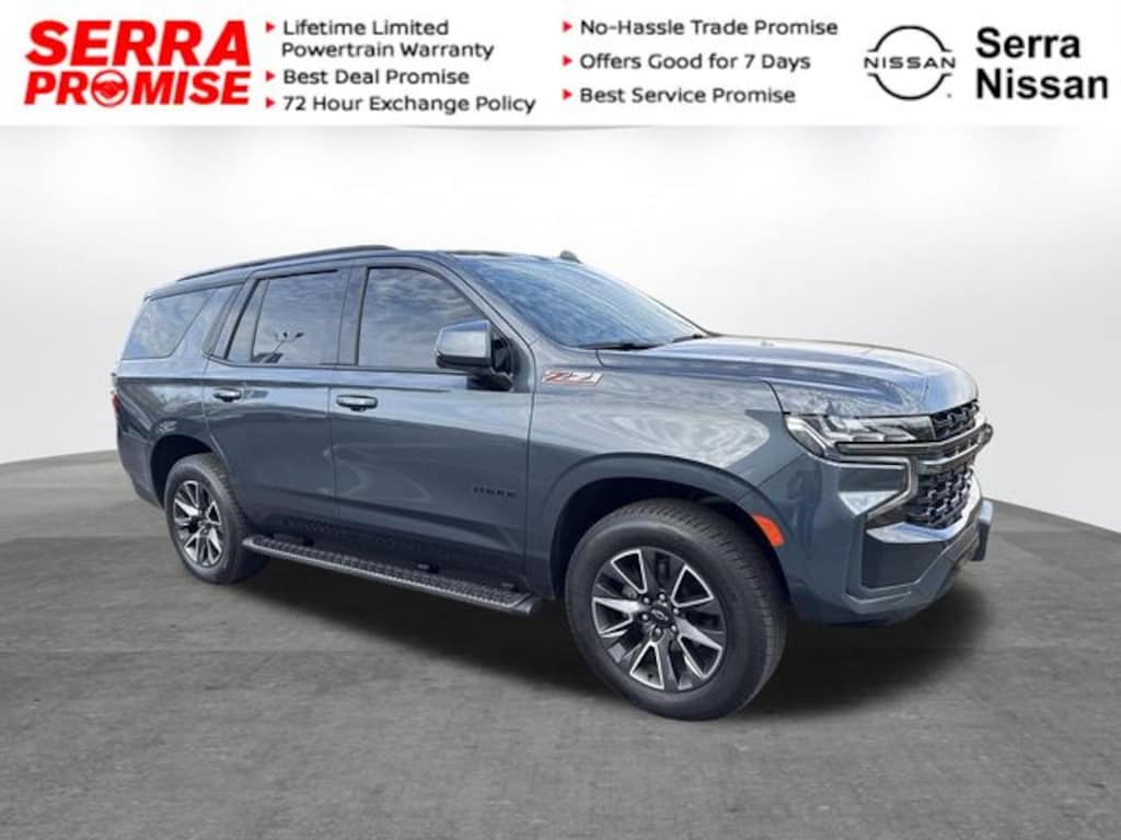 Come on down to Serra Nissan/VW to see this Shadow Gray Metallic 2021 Tahoe. Awards:
