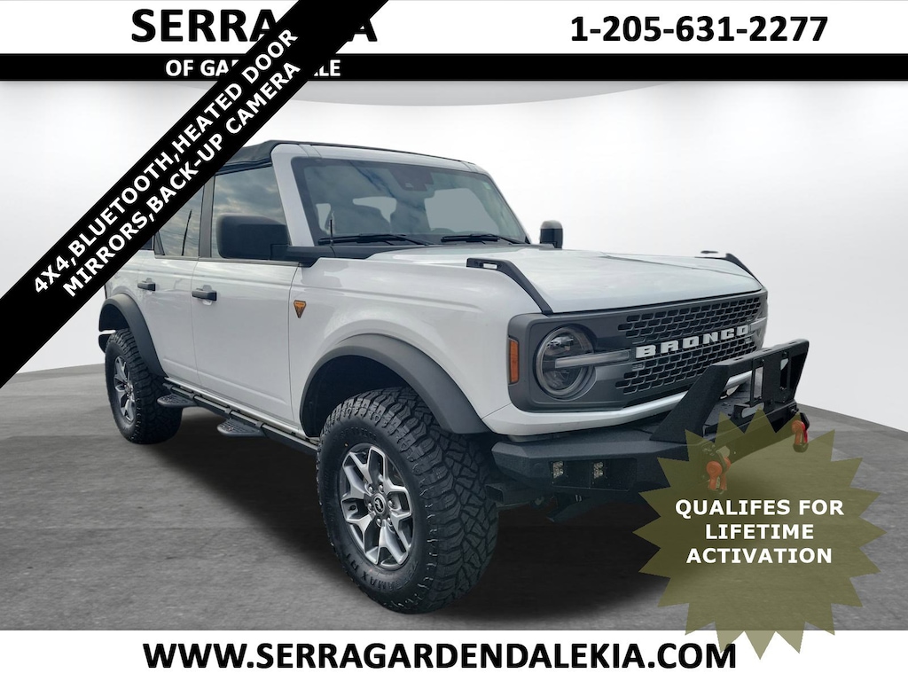Here at Serra Kia Gardendale, we offer a Life Time Power train warranty on all of our vehicles with in 10 Model years or less than 100,000 Miles!!! Some Exceptions Apply, See dealer for full details! Take advantage of the Serra way! Serra KIA Gardendale is pumped up to offer this attractive 2021 Ford Bronco in Oxford White This vehicle has passed our comprehensive inspection and comes with the following features;