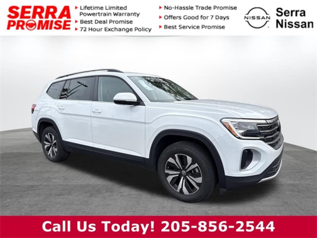 Come on down to Serra Nissan/VW to see this Pure White 2024 Atlas. 20/27 City/Highway MPG